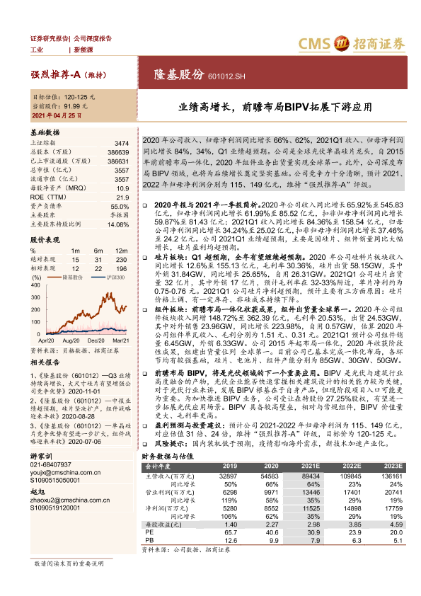 【海通证券】【20210425】20210425-招商证券-隆基股份-601012.SH-业绩高增长,前瞻布局BIPV拓展下游应用-17页