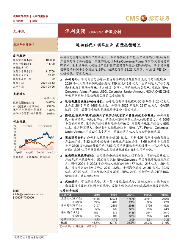 【海通证券】【20210426】华利集团-300979.SZ-新股分析:运动鞋代工领军企业 高壁垒稳增长-26页