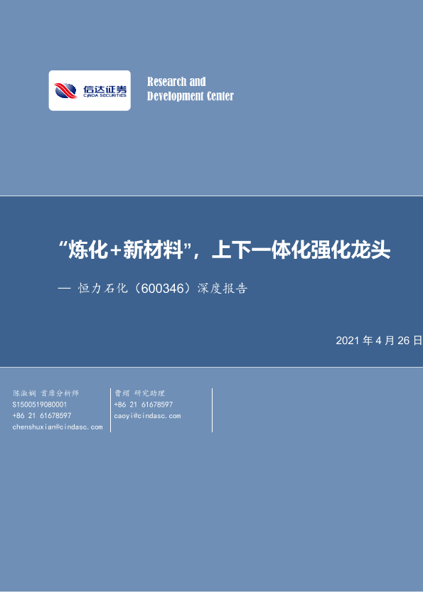 【信达证券】【20210426】“炼化+新材料”,上下一体化强化龙头-33页
