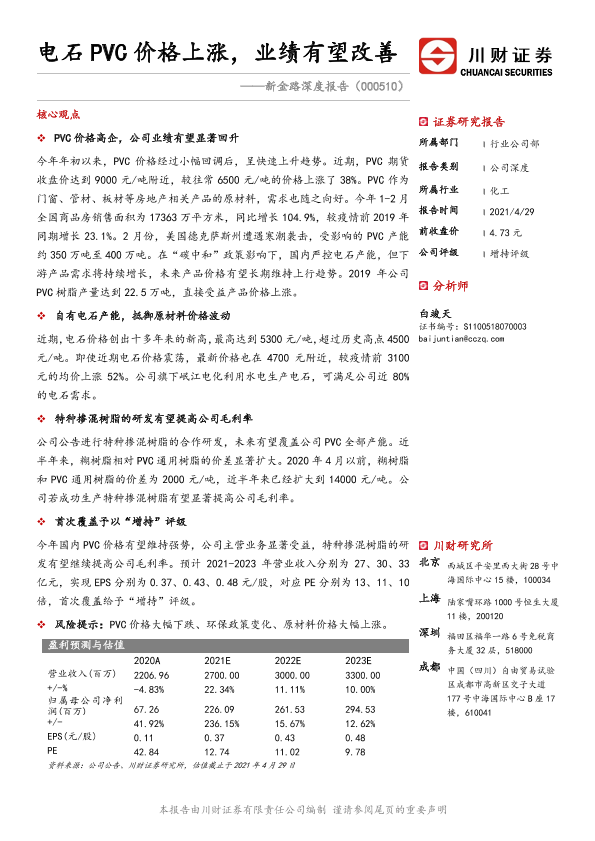 【川财证券】【20210429】新金路深度报告:电石PVC价格上涨,业绩有望改善-22页