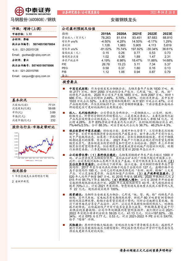【中泰证券】【20210428】20210428-中泰证券-马钢股份-600808.SH-安徽钢铁龙头-21页
