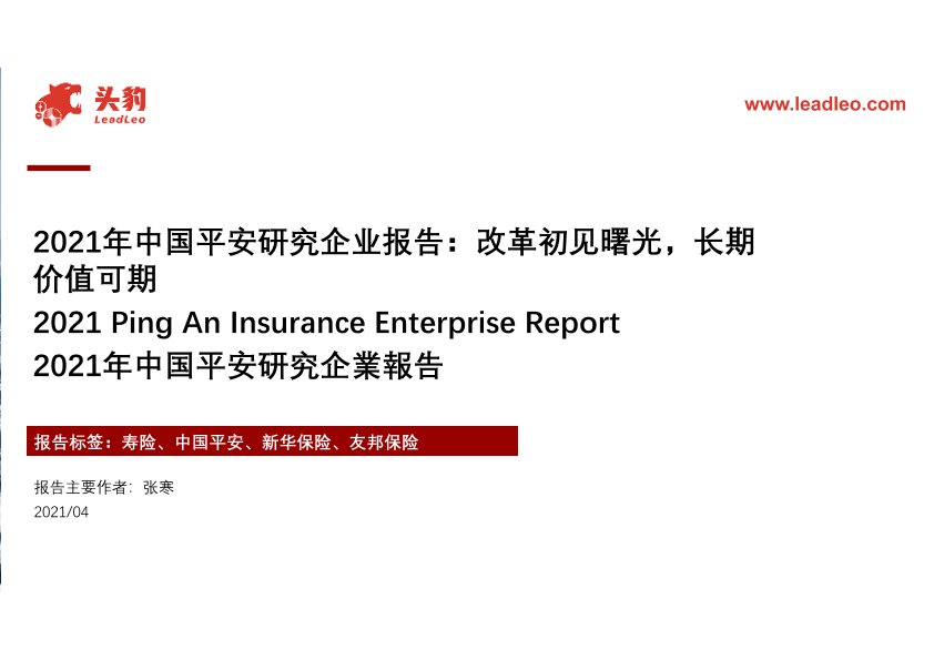 【头豹研究院】【202104】2021年中国平安研究企业报告:改革初见曙光,长期价值可期-40页