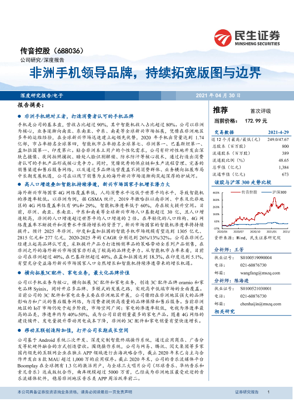【民生证券】【20210430】传音控股(688036.SH):非洲手机领导品牌,持续拓宽版图与边界-40页