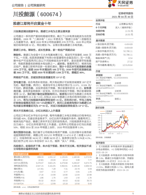 【天风证券】【20210430】川投能源-600674.SH-雅砻江即将开启黄金十年-25页