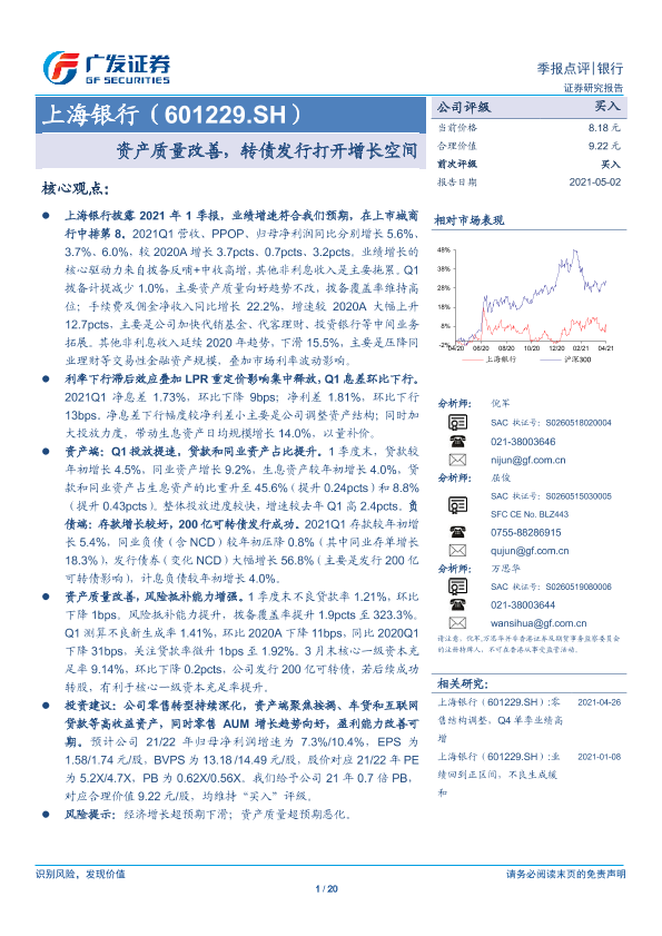 【广发证券】【20210502】上海银行(601229.SH) 资产质量改善,转债发行打开增长空间-20页