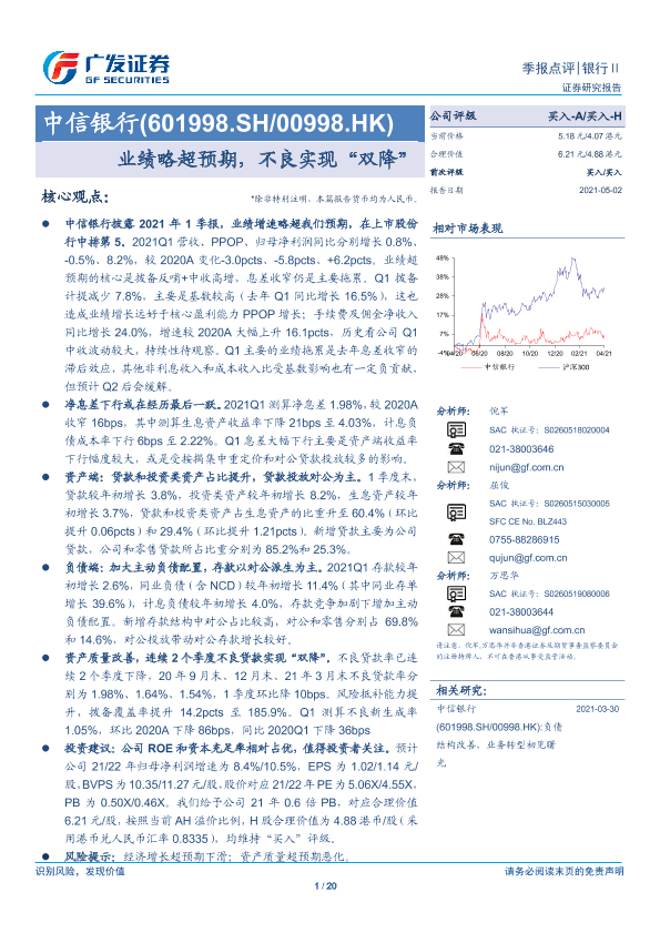 【广发证券】【20210502】20210502-广发证券-中信银行-601998.SH-业绩略超预期,不良实现“双降”-20页