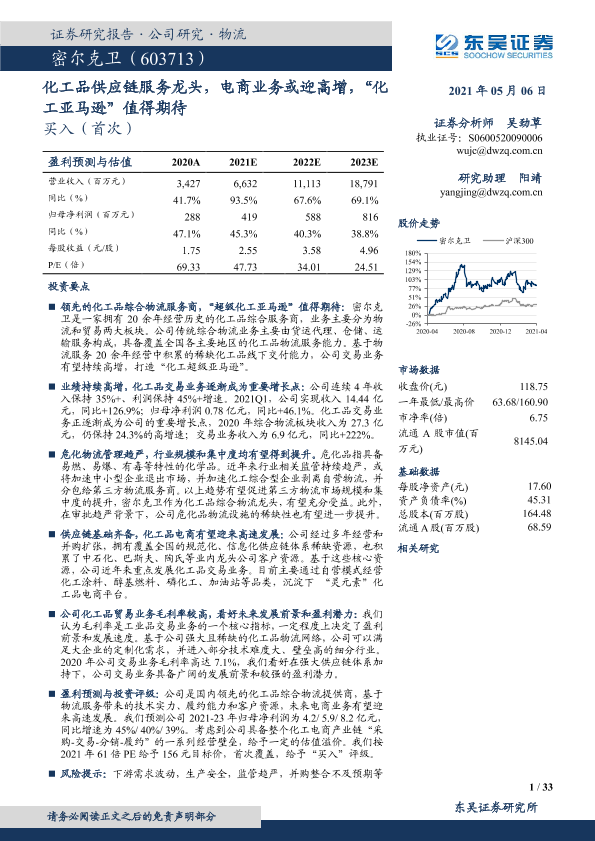 【东吴证券】【20210506】密尔克卫-603713.SH-化工品供应链服务龙头,电商业务或迎高增,“化工亚马逊”值得期待-33页