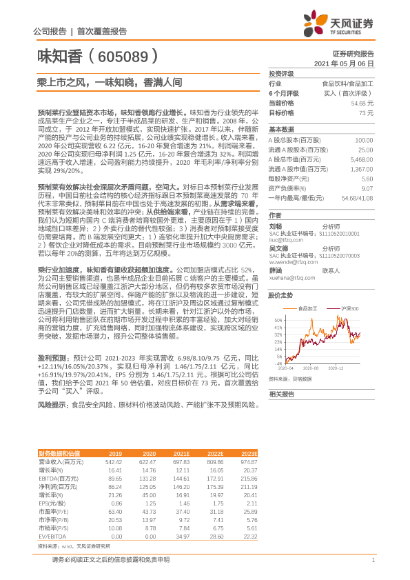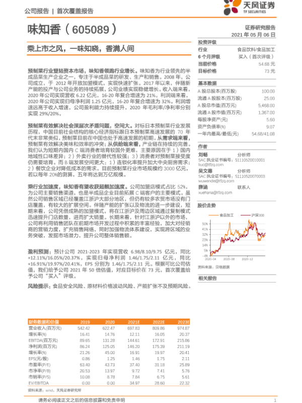 【天风证券】【20210506】20210506-天风证券-味知香-605089.SH-乘上市之风,一味知晓,香满人间-22页