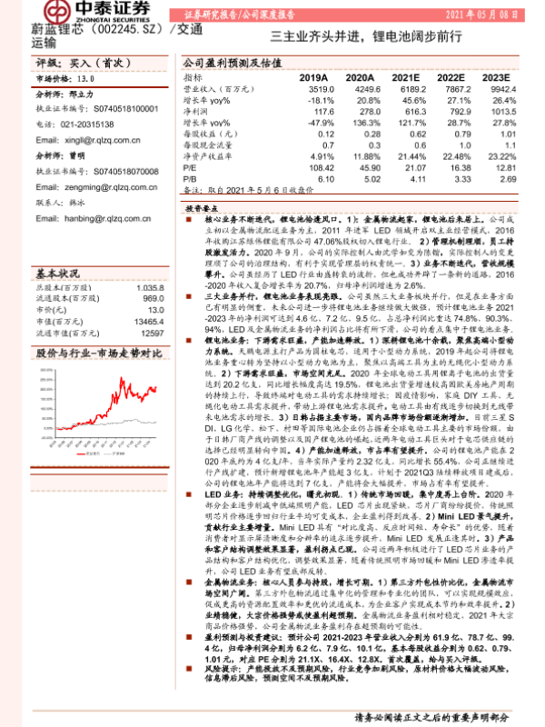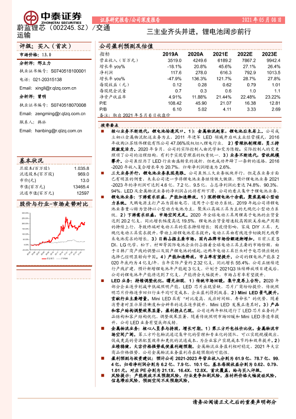【中泰证券】【20210508】中泰证券-蔚蓝锂芯-002245.SZ-三主业齐头并进,锂电池阔步前行-34页