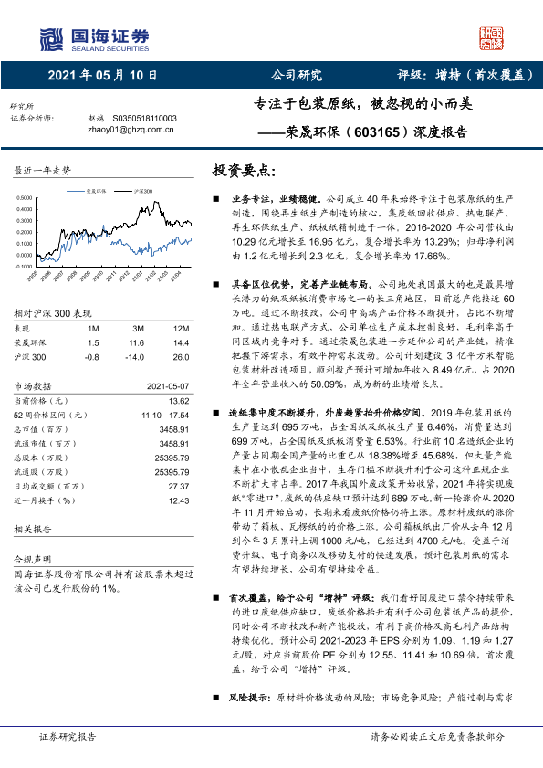 【国海证券】【20210510】20210510-国海证券-荣晟环保-603165.SH-深度报告:专注于包装原纸,被忽视的小而美-18页