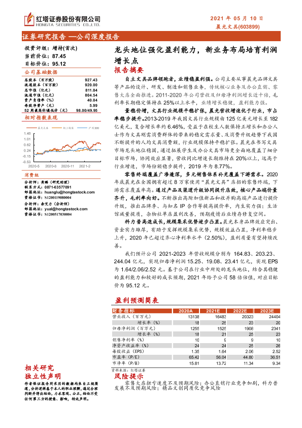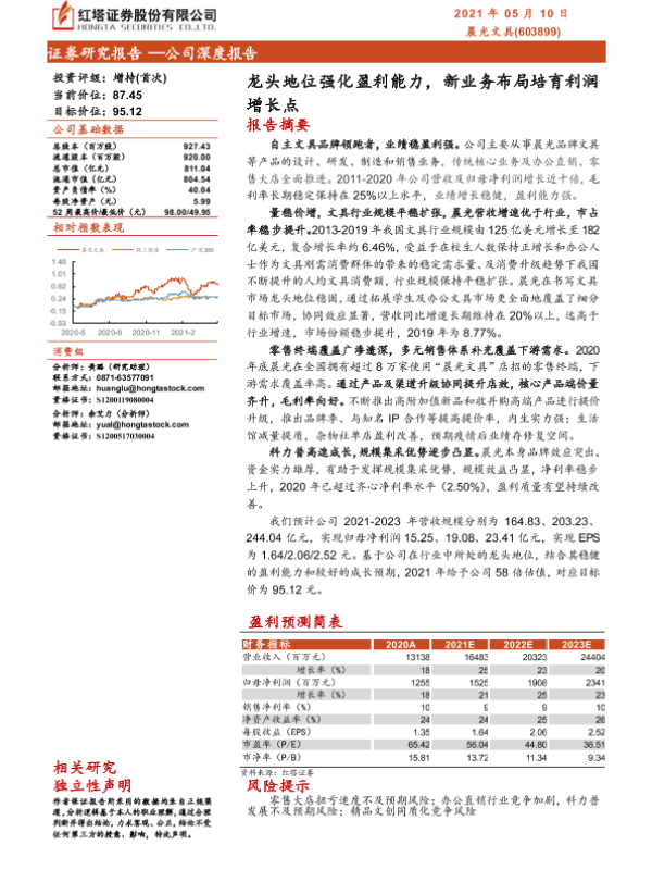 文具行业 新业务布局 晨光文具 盈利预测 证券研究