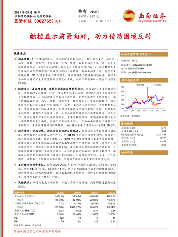【西南证券】【20210510】蓝黛科技-002765.SZ-触控显示前景向好,动力传动困境反转-27页