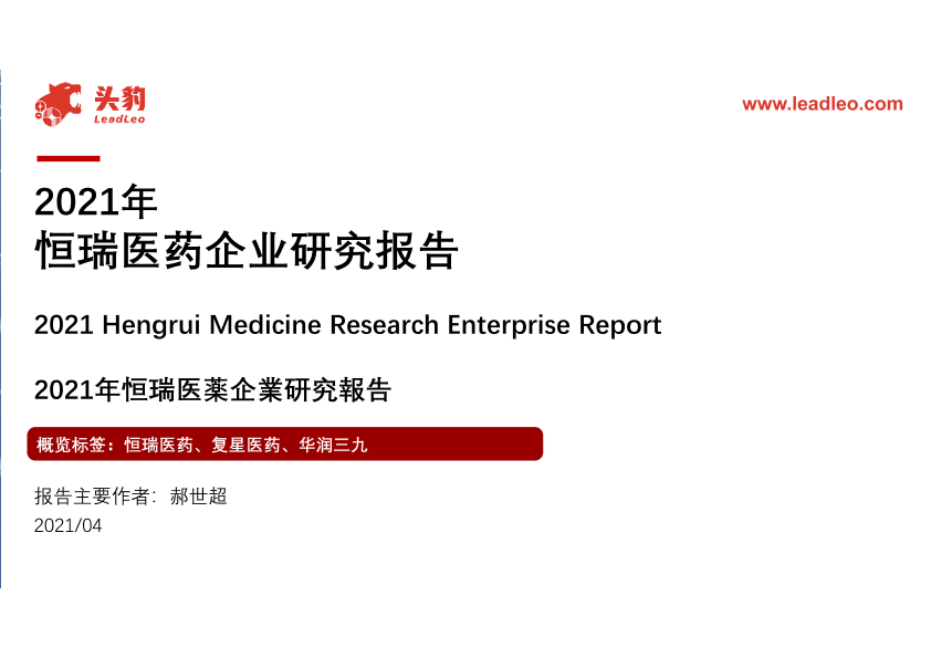 【头豹研究院】【2021】2021年恒瑞医药企业研究报告-41页