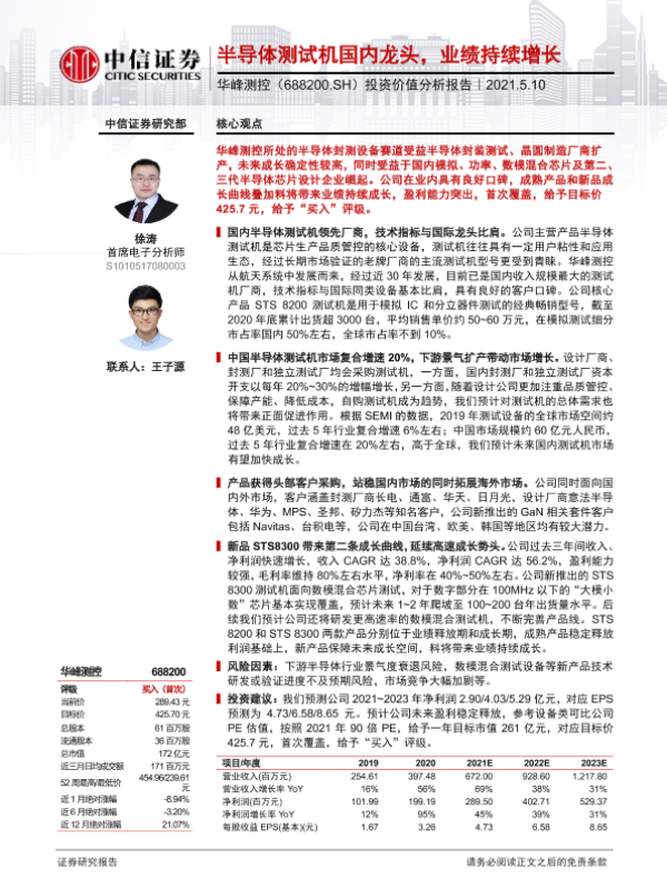 【中信证券】【20210510】20210510-中信证券-华峰测控-688200.SH-投资价值分析报告:半导体测试机国内龙头,业绩持续增长-26页