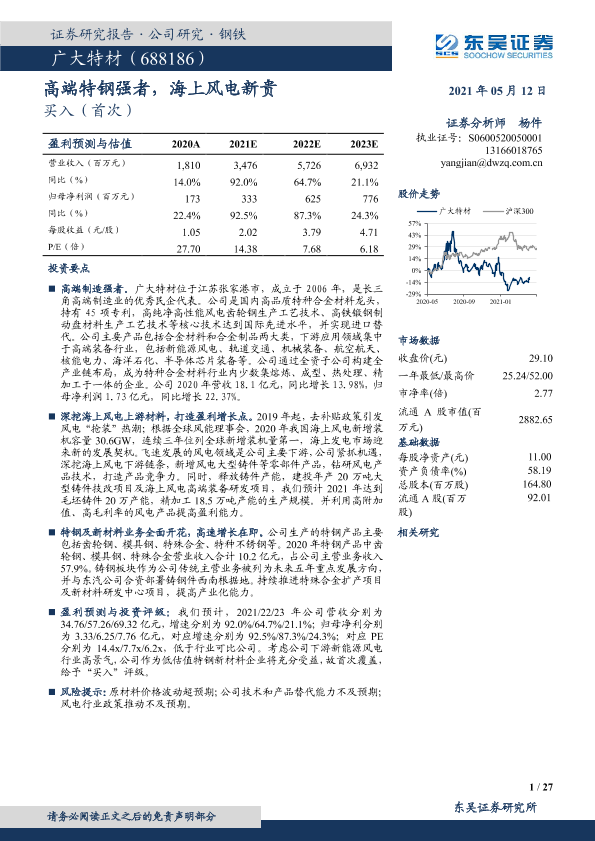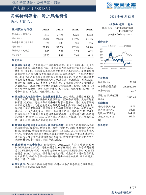 【东吴证券】【20210512】20210512-东吴证券-广大特材-688186.SH-高端特钢强者,海上风电新贵-27页