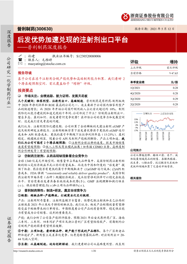 【浙商证券】【20210512】普利制药深度报告:后发优势加速兑现的注射剂出口平台-20页