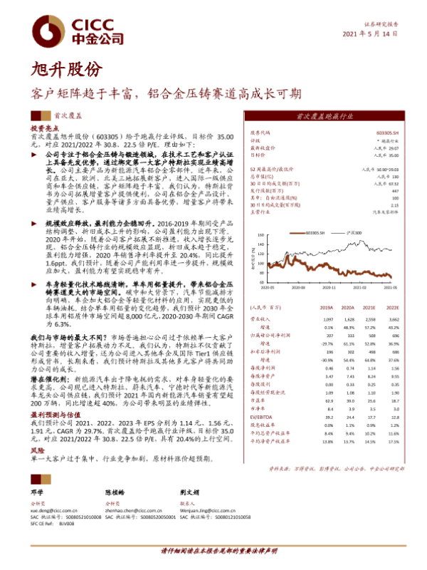 【中金公司】【20210514】客户矩阵趋于丰富,铝合金压铸赛道高成长可期-25页