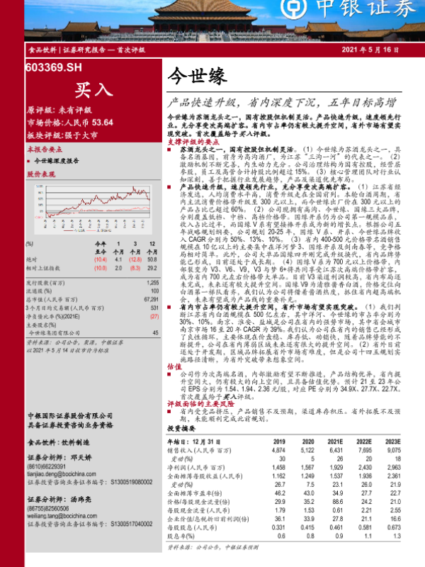【中银证券】【20210516】20210516-中银证券-今世缘-603369.SH-产品快速升级,省内深度下沉,五年目标高增-23页