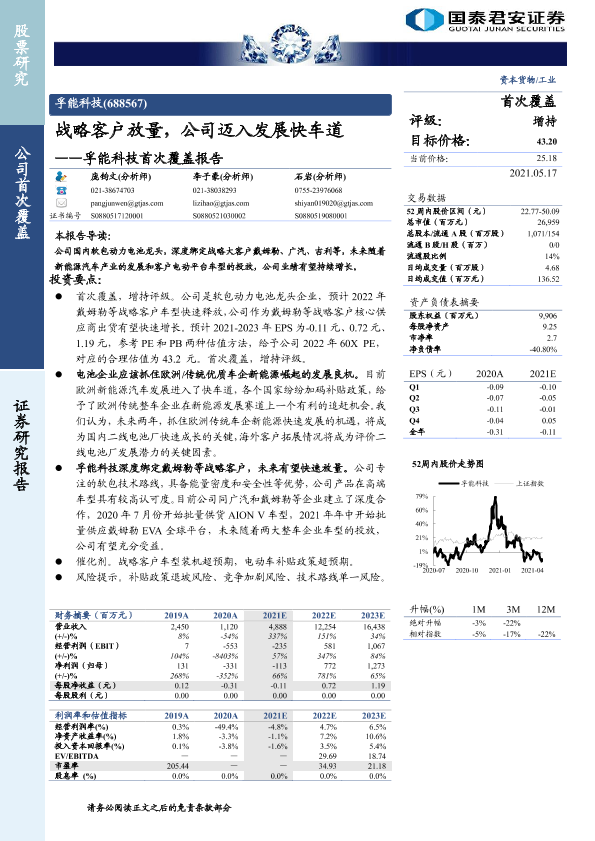 【国泰君安证券】【20210517】孚能科技首次覆盖报告:战略客户放量,公司迈入发展快车道-23页