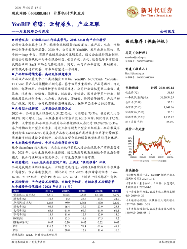 【新时代证券】【20210517】用友网络公司深度:YonBIP前瞻:云智原生,产业互联-46页