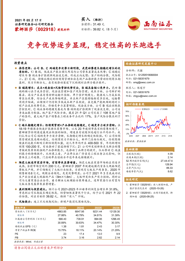 【西南证券】【20210517】蒙娜丽莎-002918.SZ-竞争优势逐步显现,稳定性高的长跑选手-23页