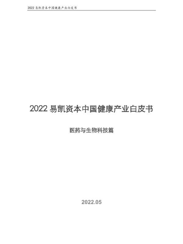 【易凯资本】【20220501】2022易凯资本中国健康产业白皮书:医药与生物科技篇-38页