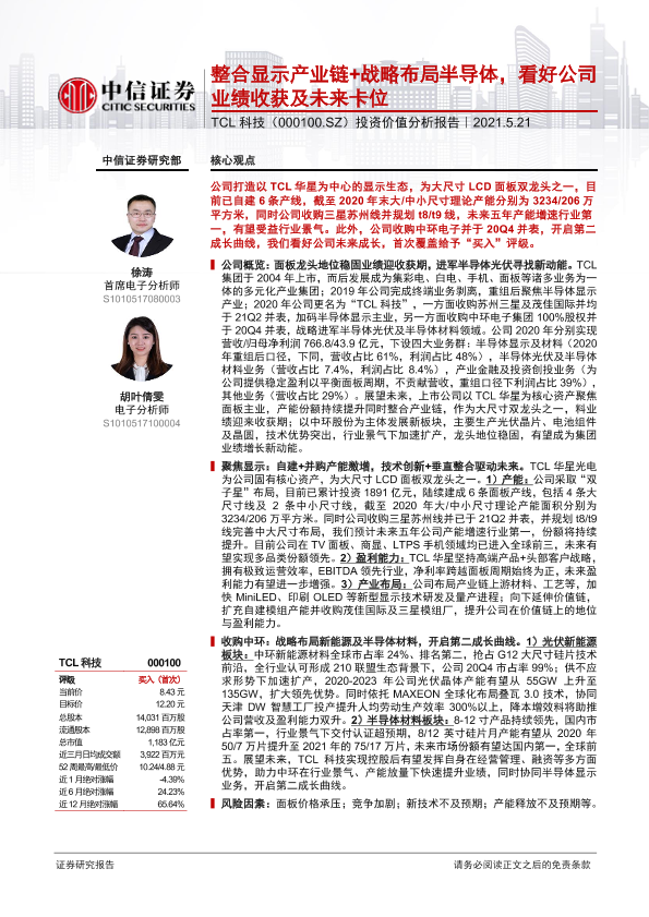 【中信证券】【20210521】20210521-中信证券-TCL科技-000100.SZ-投资价值分析报告:整合显示产业链+战略布局半导体,看好公司业绩收获及未来卡位-44页
