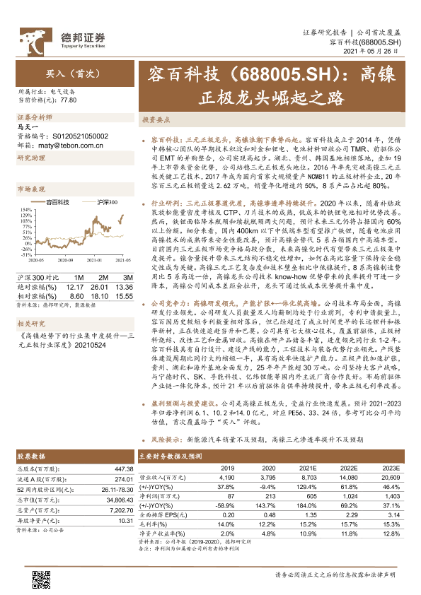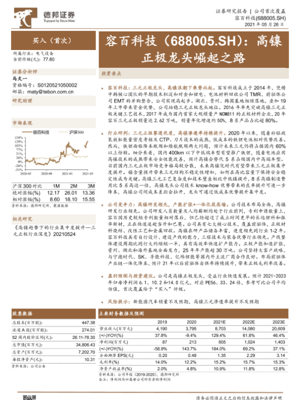 【德邦证券】【20210526】容百科技:高镍正极龙头崛起之路-37页