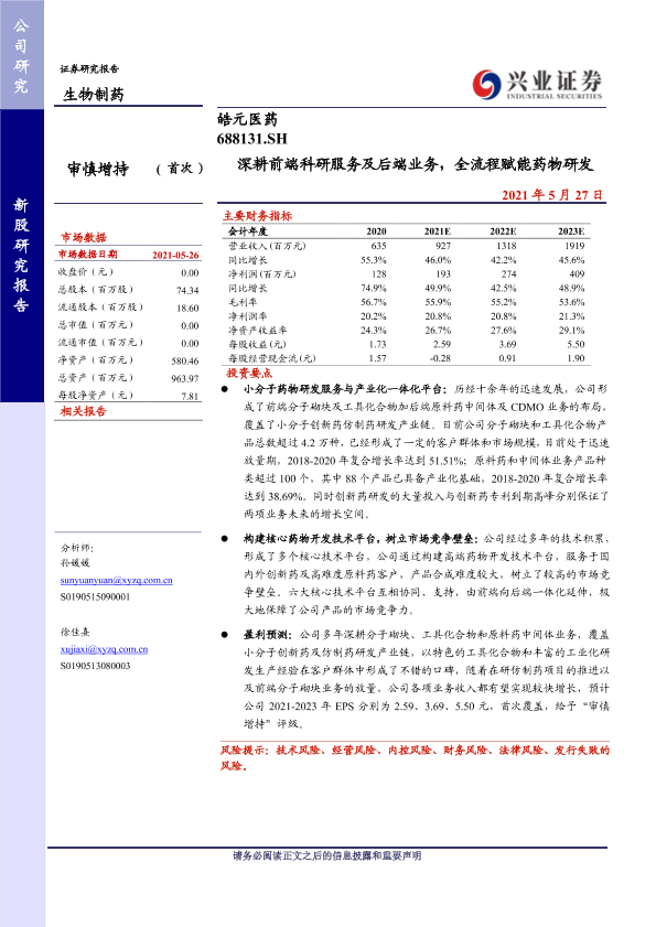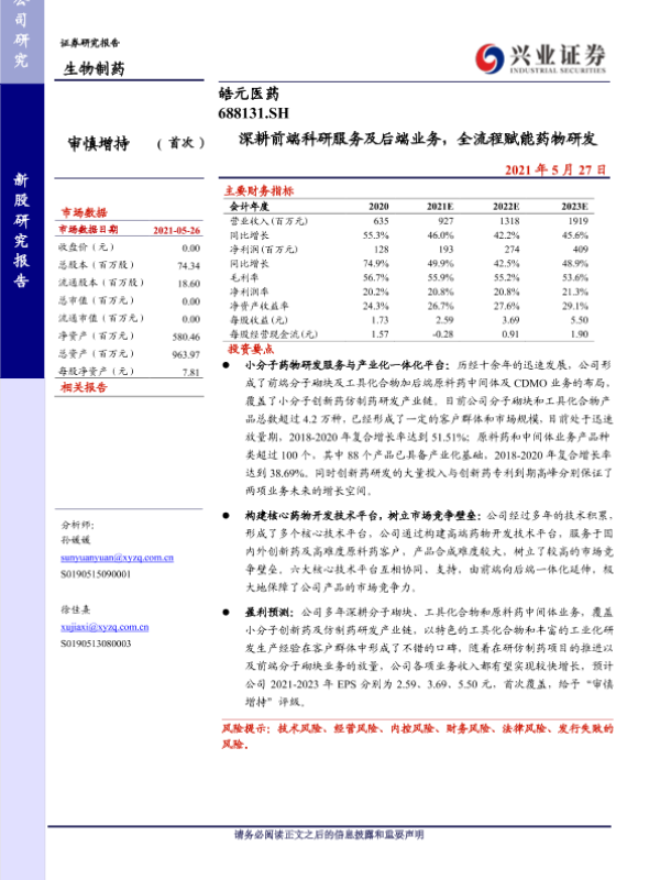 【兴业证券】【20210527】皓元医药-深耕前端科研服务及后端业务,全流程赋能药物研发-28页
