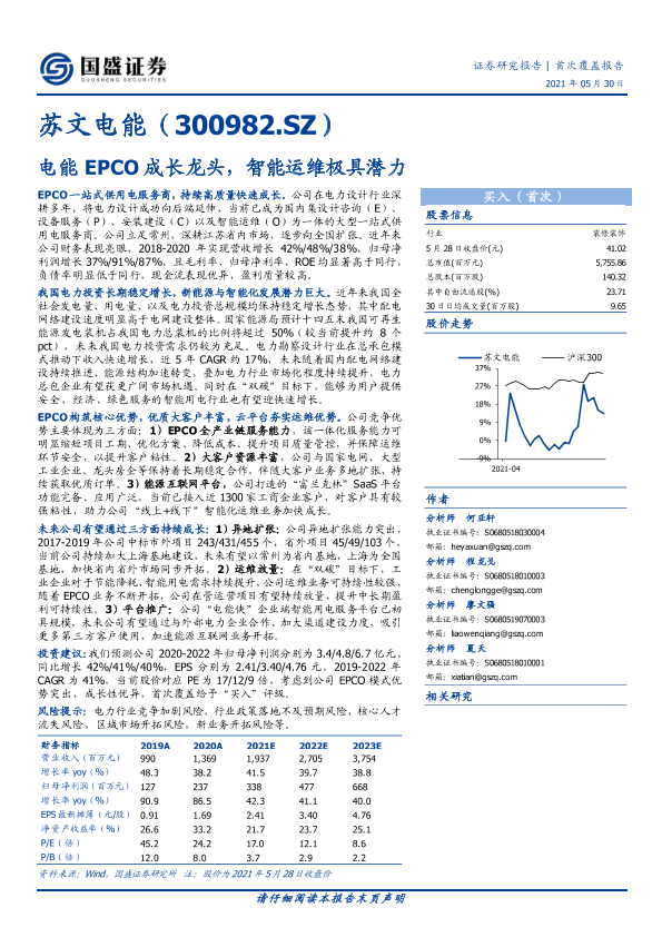 【国盛证券】【20210530】苏文电能(300982.SZ)电能EPCO成长龙头,智能运维极具潜力-30页