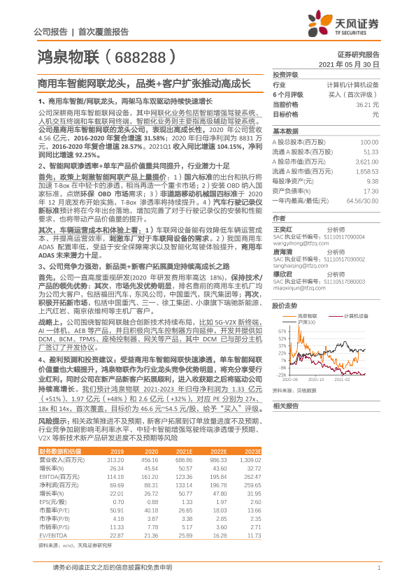 【天风证券】【20210530】20210530-天风证券-鸿泉物联-688288.SH-商用车智能网联龙头,品类+客户扩张推动高成长-32页