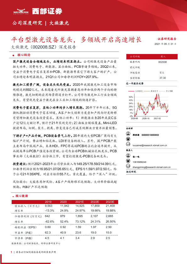 【西部证券】【20210531】20210531-西部证券-大族激光-002008.SZ-深度报告:平台型激光设备龙头,多领域开启高速增长-42页