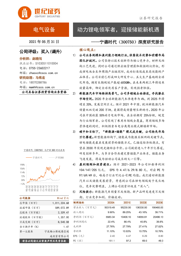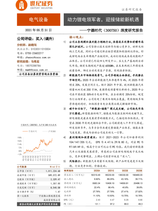 【世纪证券】【20210531】20210531-世纪证券-宁德时代-300750.SZ-深度研究报告:动力锂电领军者,迎接储能新机遇-52页
