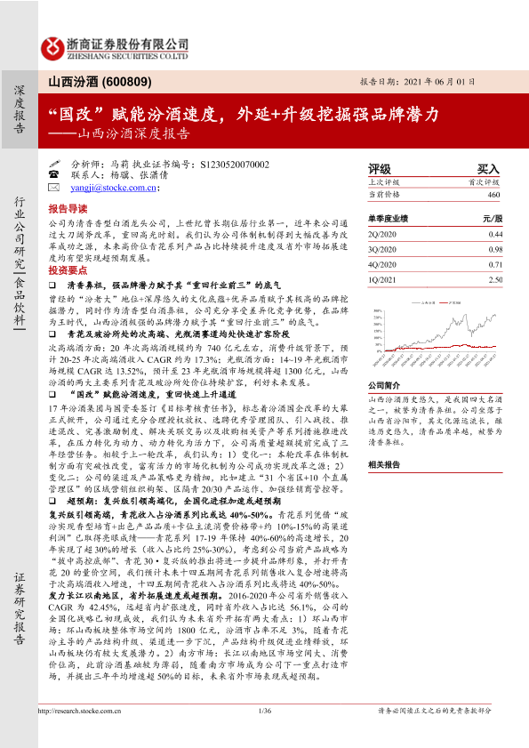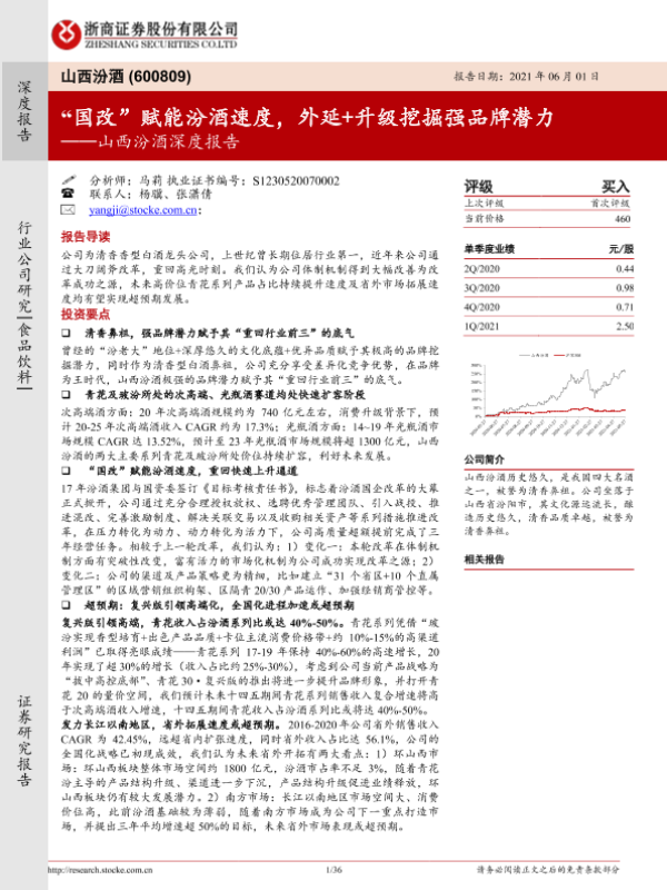 【浙商证券】【20210601】山西汾酒深度报告:“国改”赋能汾酒速度,外延+升级挖掘强品牌潜力-36页