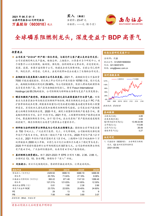 【西南证券】【20210601】全球磷系阻燃剂龙头,深度受益于BDP高景气-35页