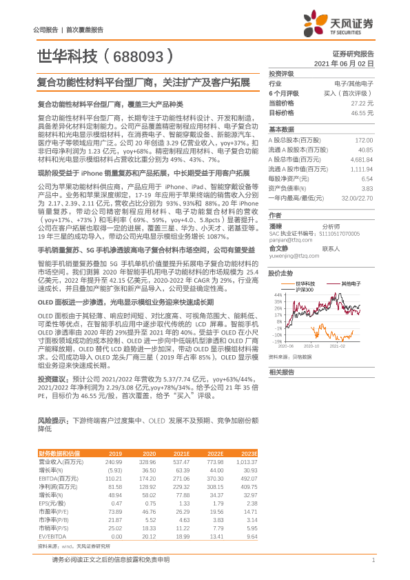 【天风证券】【20210602】世华科技-688093.SH-复合功能性材料平台型厂商,关注扩产及客户拓展-20页