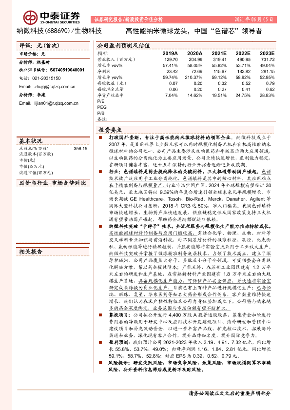 【中泰证券】【20210605】20210605-中泰证券-纳微科技-688690.SH-高性能纳米微球龙头,中国“色谱芯”领导者-26页