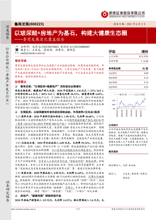 【浙商证券】【20210605】鲁商发展首次覆盖报告:以玻尿酸+房地产为基石,构建大健康生态圈-27页