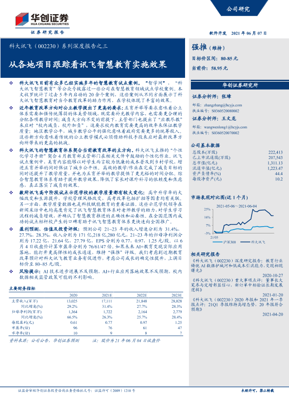 【华创证券】【20210607】20210607-华创证券-科大讯飞-002230.SZ-系列深度报告之三:从各地项目跟踪看讯飞智慧教育实施效果-19页