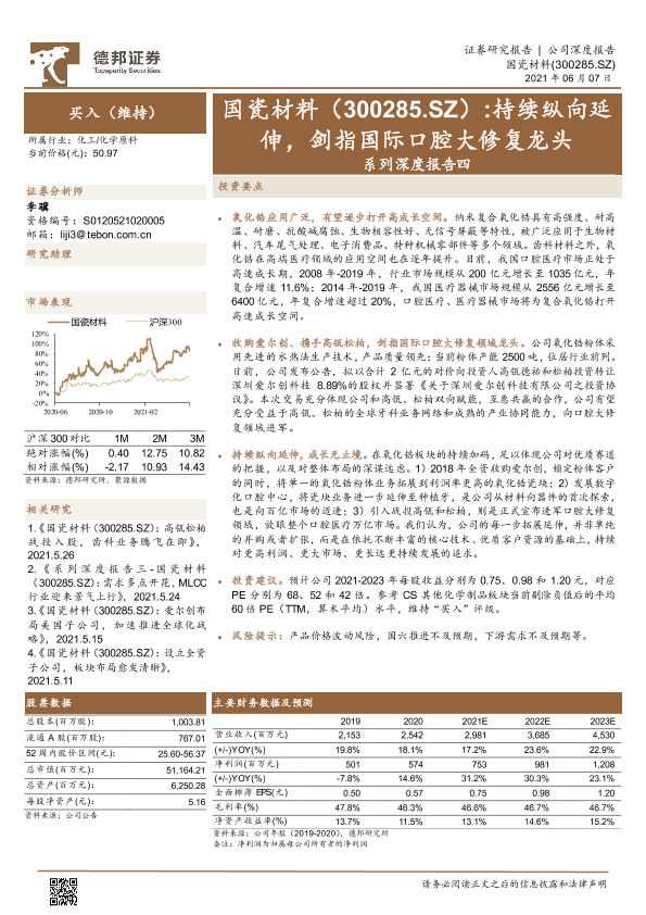 【德邦证券】【20210607】20210607-德邦证券-国瓷材料-300285.SZ-系列深度报告四:持续纵向延伸,剑指国际口腔大修复龙头-52页