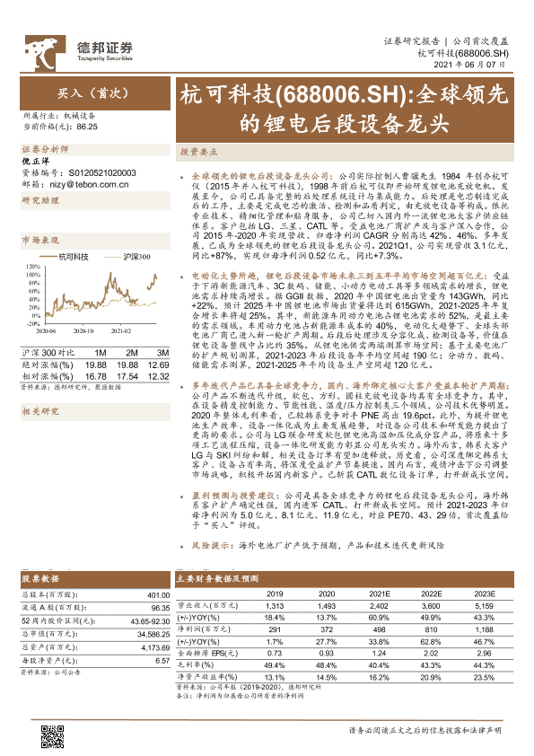 【德邦证券】【20210607】20210607-德邦证券-杭可科技-688006.SH-全球领先的锂电后段设备龙头-26页