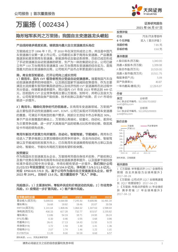 【天风证券】【20210607】隐形冠军系列之万里扬:我国自主变速器龙头崛起-21页