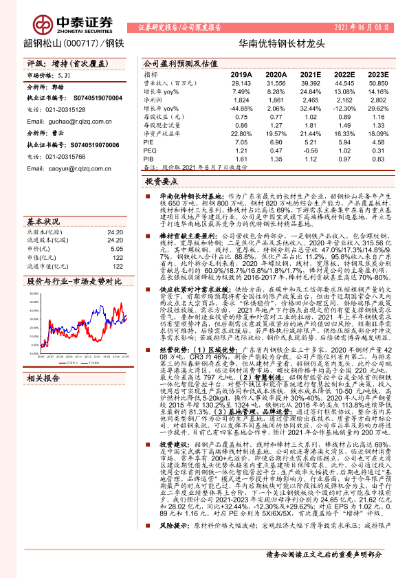 【中泰证券】【20210608】20210608-中泰证券-韶钢松山-000717.SZ-华南优特钢长材龙头-22页