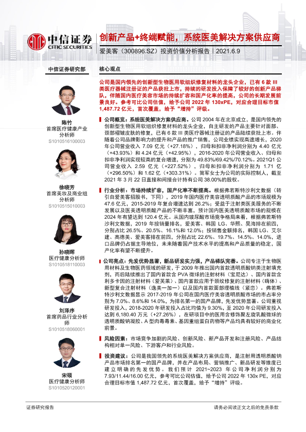 【中信证券】【20210609】20210609-中信证券-爱美客-300896.SZ-投资价值分析报告:创新产品+终端赋能,系统医美解决方案供应商-38页