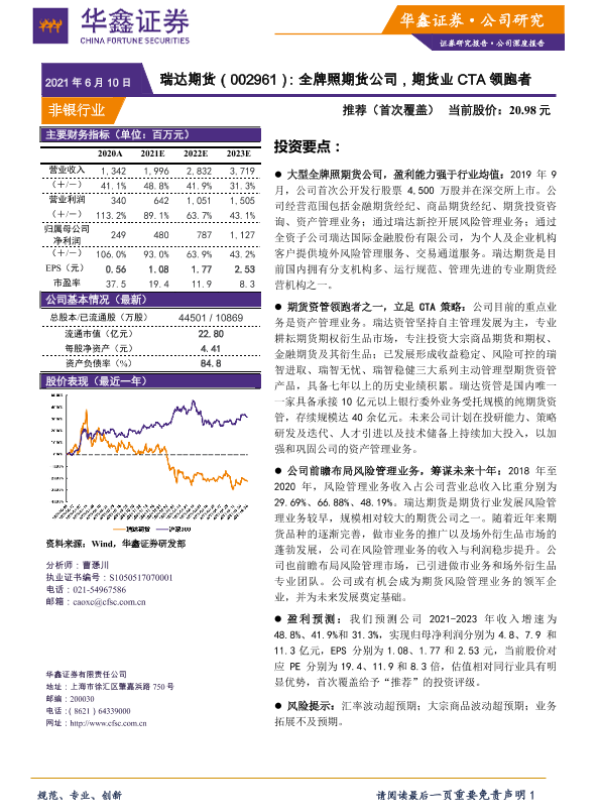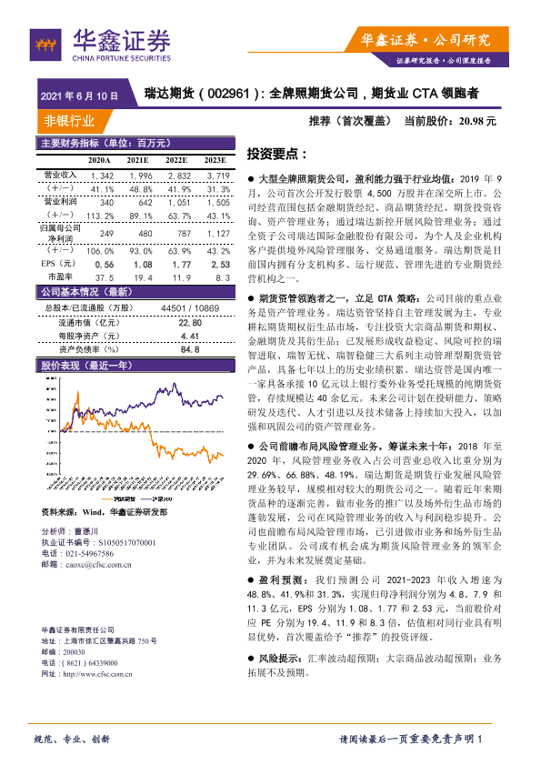 【华鑫证券】【20210610】瑞达期货:全牌照期货公司,期货业CTA领跑者-24页