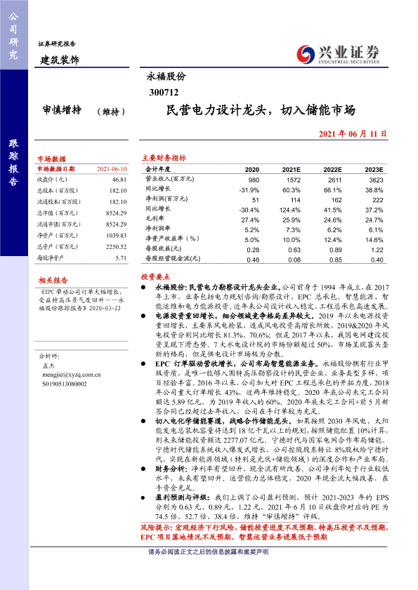 【兴业证券】【20210611】民营电力设计龙头,切入储能市场-31页