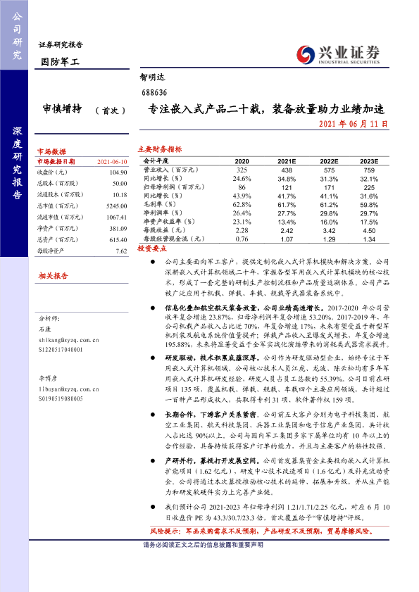 【兴业证券】【20210611】专注嵌入式产品二十载,装备放量助力业绩加速-34页
