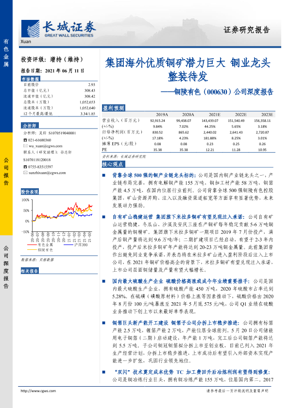 【长城证券】【20210611】20210611-长城证券-铜陵有色-000630.SZ-公司深度报告:集团海外优质铜矿潜力巨大,铜业龙头整装待发-26页