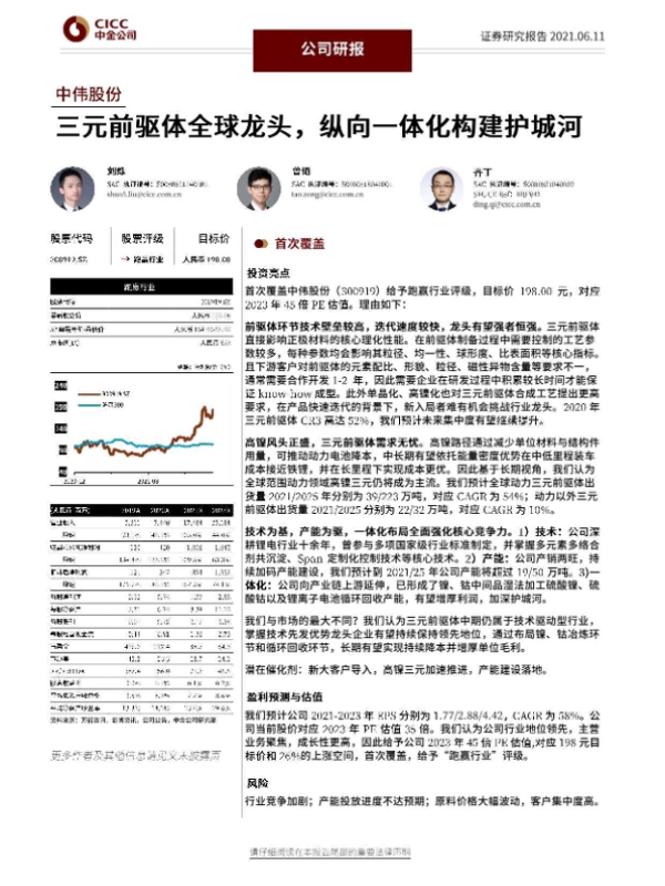 【中金公司】【20210611】中伟股份-三元前驱体全球龙头,纵向一体化构建护城河-29页