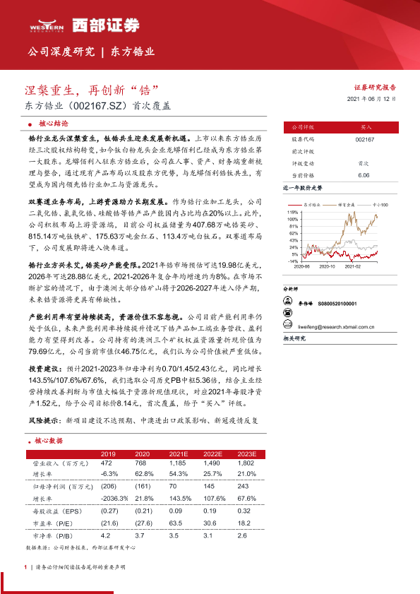 【西部证券】【20210612】20210612-西部证券-东方锆业-002167.SZ-首次覆盖:涅槃重生,再创新“锆”-30页